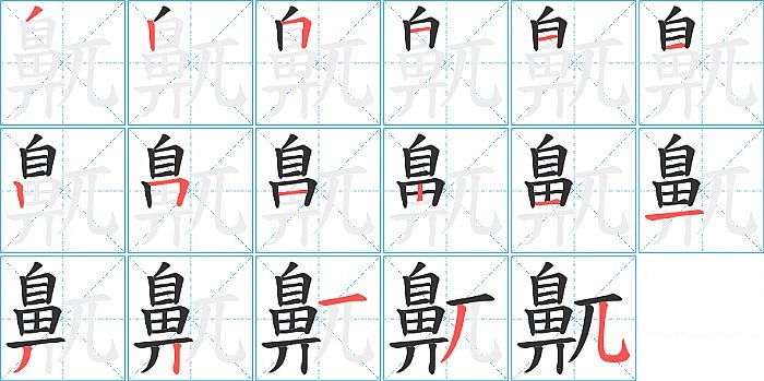 鼿是左右结构,鼿的部首是“鼻”,部外笔画3画,总笔画17画,鼿的笔画顺序是“撇、竖、横折、横、横、横、竖、横折、横、竖、横、横、撇、竖、横、撇、竖弯钩”。看看“鼿”字什么意思 >>
