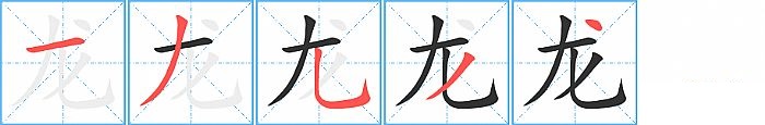 《龙》字的笔顺分步演示图(一笔一画写汉字)